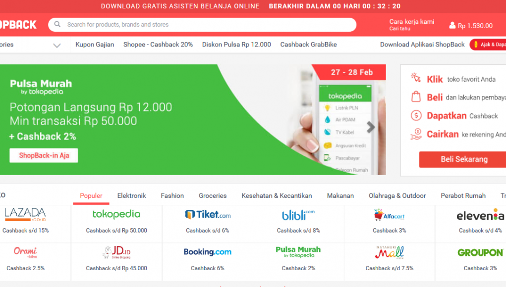 Semakin sering kita berbelanja online semakin banyak cashback yang kita kumpulkan, dan semakin banyak pula uang yang dihemat. Solusi Belanja Cermat dan Hemat? ShopBack-in Aja!