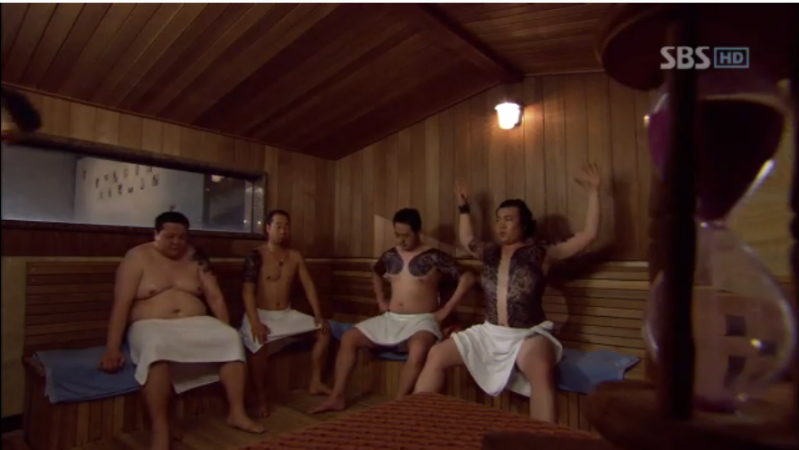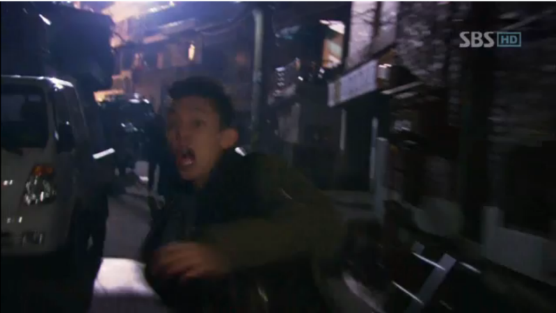 Yong Sul, Man Bo dan Chi San langsung melindungi Lee Gak. Park Ha mengambil wajan dan mengarahkan pada mereka sambil bertanya, “ Siapa kalian?”